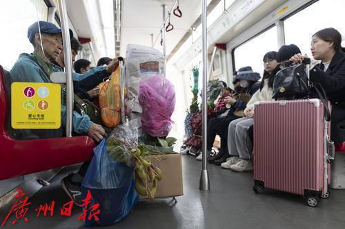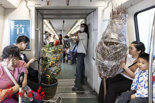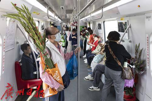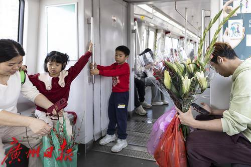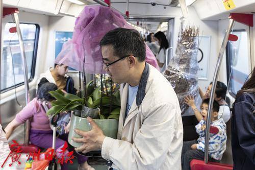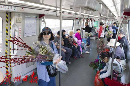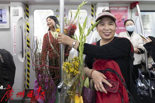 随着春节的脚步日益临近,广州的花卉市场迎来了年花的销售旺季,据了解,岭南花卉市场日销鲜切花二三十万扎。 2025年1月25日,临近春节,地铁五号线从滘口站开出的每一趟车、每一节车厢都被岭南花卉市场的鲜花包围,各式各样的年花被街坊们捧进车厢,各样年花在地铁里争相绽放,衬得车厢里充满了春天的生机。