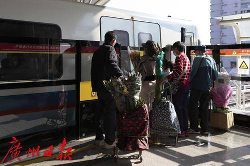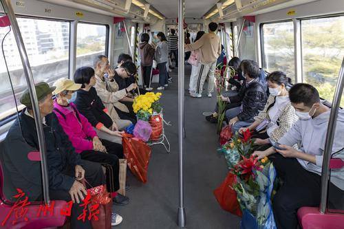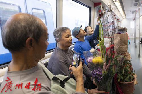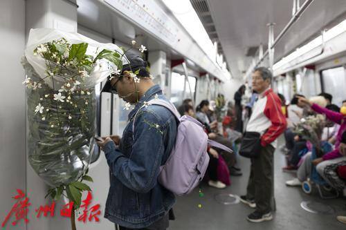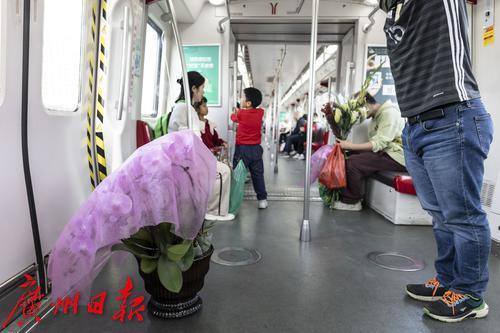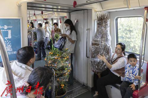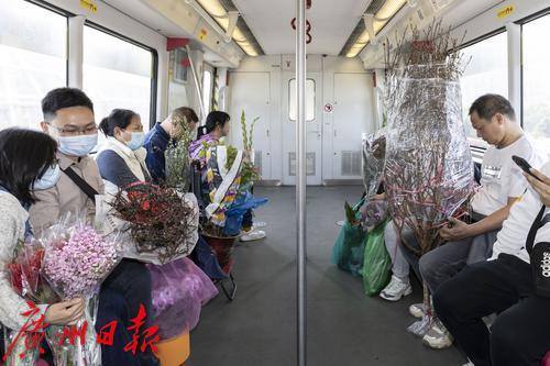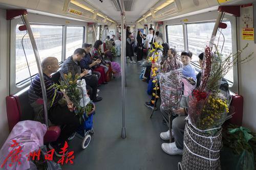 2025年1月25日,临近春节,地铁五号线从滘口站开出的每一趟车、每一节车厢都被鲜花包围,各式各样的鲜花从这里被捧进车厢,各样年花在地铁里争相绽放,衬得车厢里充满了春天的生机。