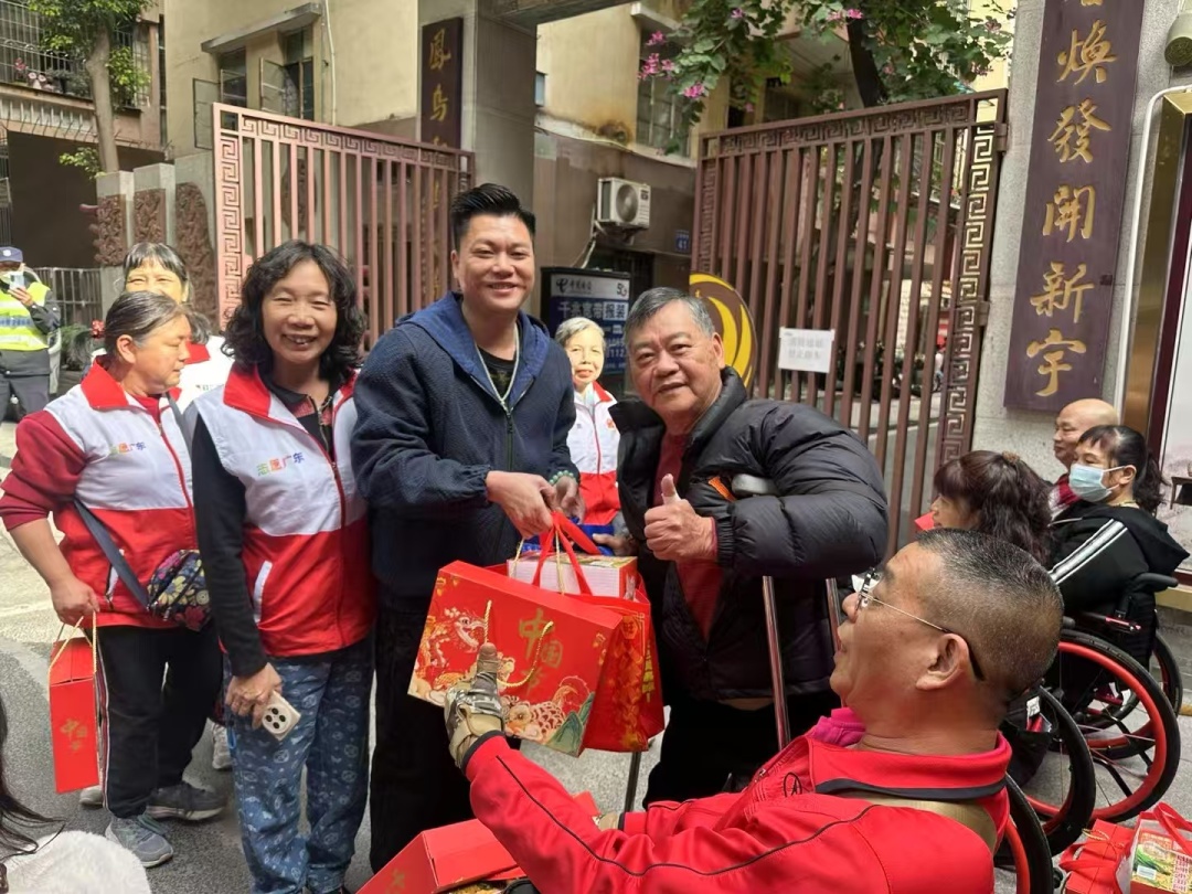 赵广军生命热线协会理事梁剑恒为残障人士赠送春节礼物