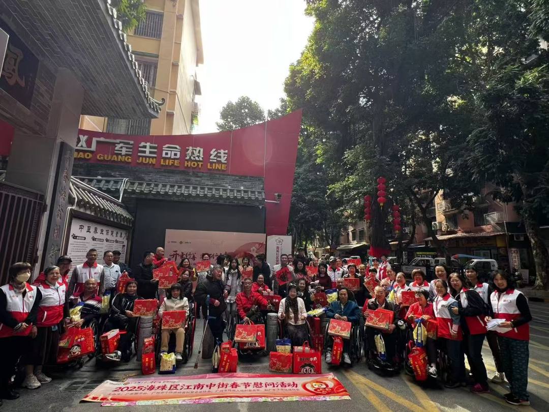 这次新春关爱残疾人活动由中国慈善联合会发起,广东狮子会、广州市个体劳动者私营企业协会、广州市残疾人福利基金会、赵广军生命热线协会、广州市肢残人协会联合主办,广东狮子会博研服务队、孝天下服务队、慈爱服务队、前进服务队普光服务队承办,江南中街残疾人联合会和江南中街公共卫生委员会办公室协办。