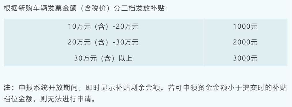 补贴将根据新购车辆发票金额(含税价)分三档发放补贴——