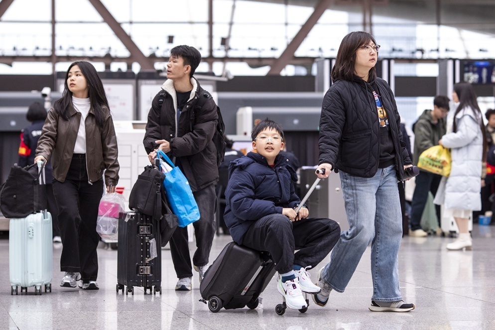 值得一提的是,为了让旅客等车的时光有更加丰富的活动,广州南站此次春运还大打“文化牌”。三层候车室新建“旅客阅读空间”,设置自助借阅机,可免费办证、借还、阅读,外借图书可归还至广州市公共图书馆服务体系内任一图书馆。记者现场看到,图书室刷身份证即可进入,里面基本坐满了旅客,人手捧着书在阅读。广州南站工作人员阳思妮告诉记者:“图书室里的儿童读物是最受欢迎的,经常都有很多孩子在里面看书。”