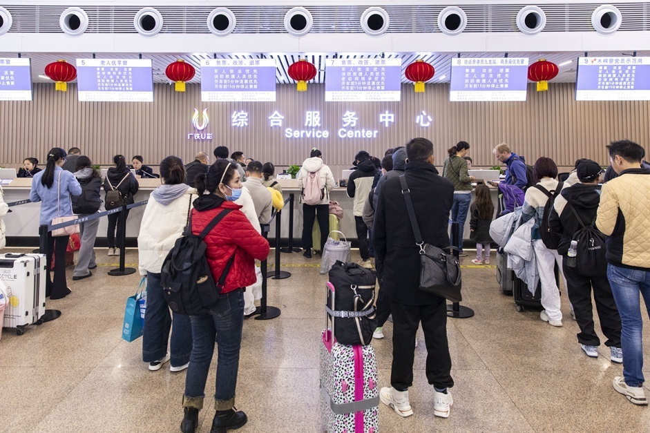 记者昨日上午10时来到广州南站,从地铁口H口进站,往东门靠南方向走几步就到了新建的综合服务中心。该中心是广州南站为了迎接本次春运,专门将原售票大厅精心改造而成。12个“交互式”人工窗口取代了原来的玻璃窗口,工作人员和旅客之间不再有冷冰冰的玻璃墙,而是面对面一窗办理“售退改”等业务。“我们一家准备去香港游玩,因为小孩是外国护照,网上买票有点麻烦,我们就到现场买票了。”陈女士和外籍老公带着一对混血儿女站在排队的人群中很是惹眼,她向记者解释道。