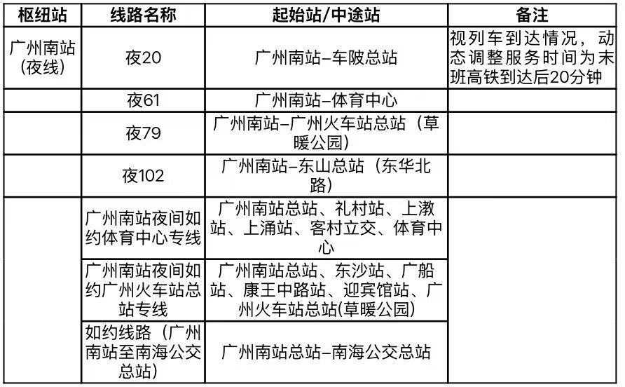 同时,记者获悉,大年初五起,在广州南站节后返程高峰夜间(即23:00至高铁末班车抵达),将根据客流情况,动态调整夜20、夜61、夜79、夜102线的服务时间至末班高铁到达后20分钟。同时,灵活组织开行如约巴士线路,线路覆盖广州火车站、体育中心等方向。无论您何时抵达,总有公交相伴照亮归途。