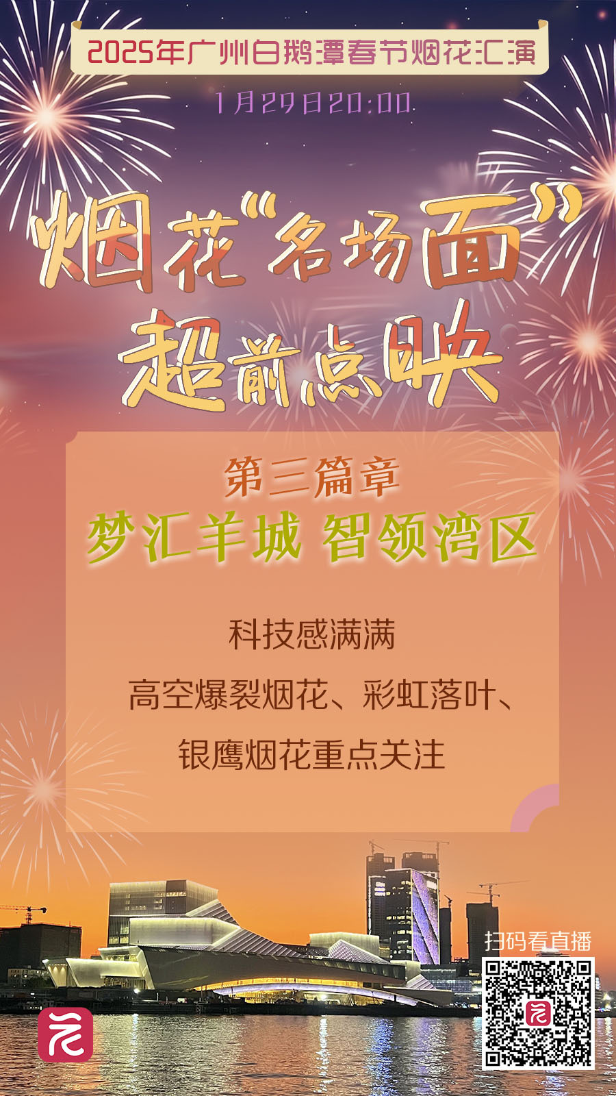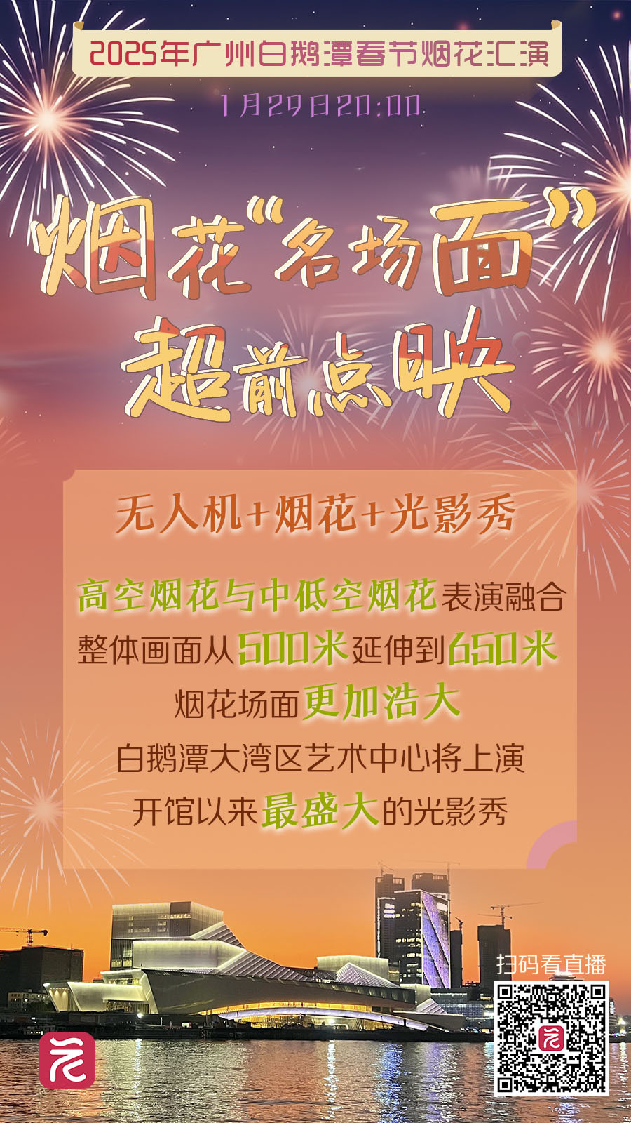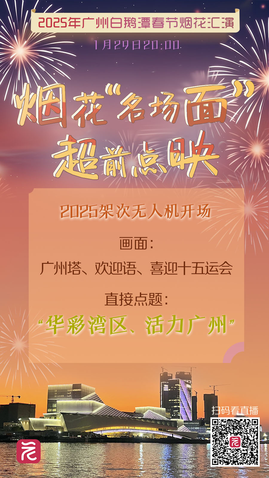 2025年广州春节烟花汇演即将在白鹅潭上举行