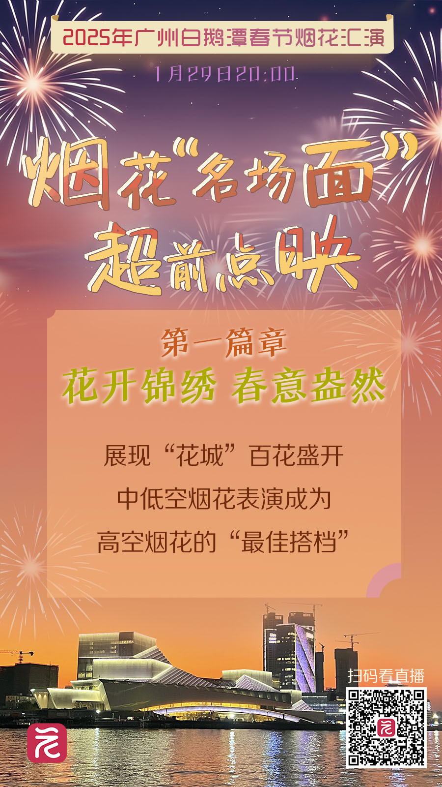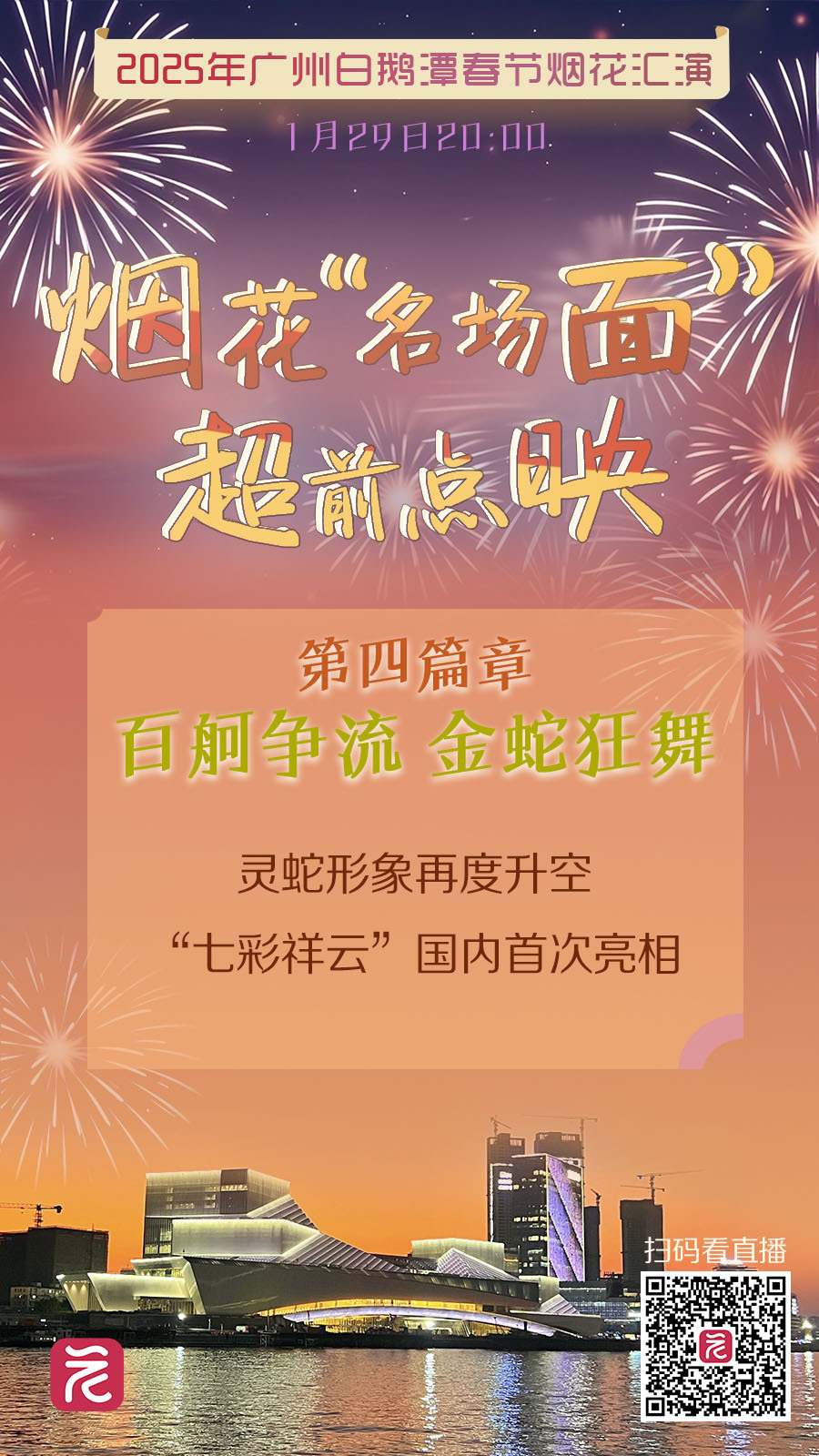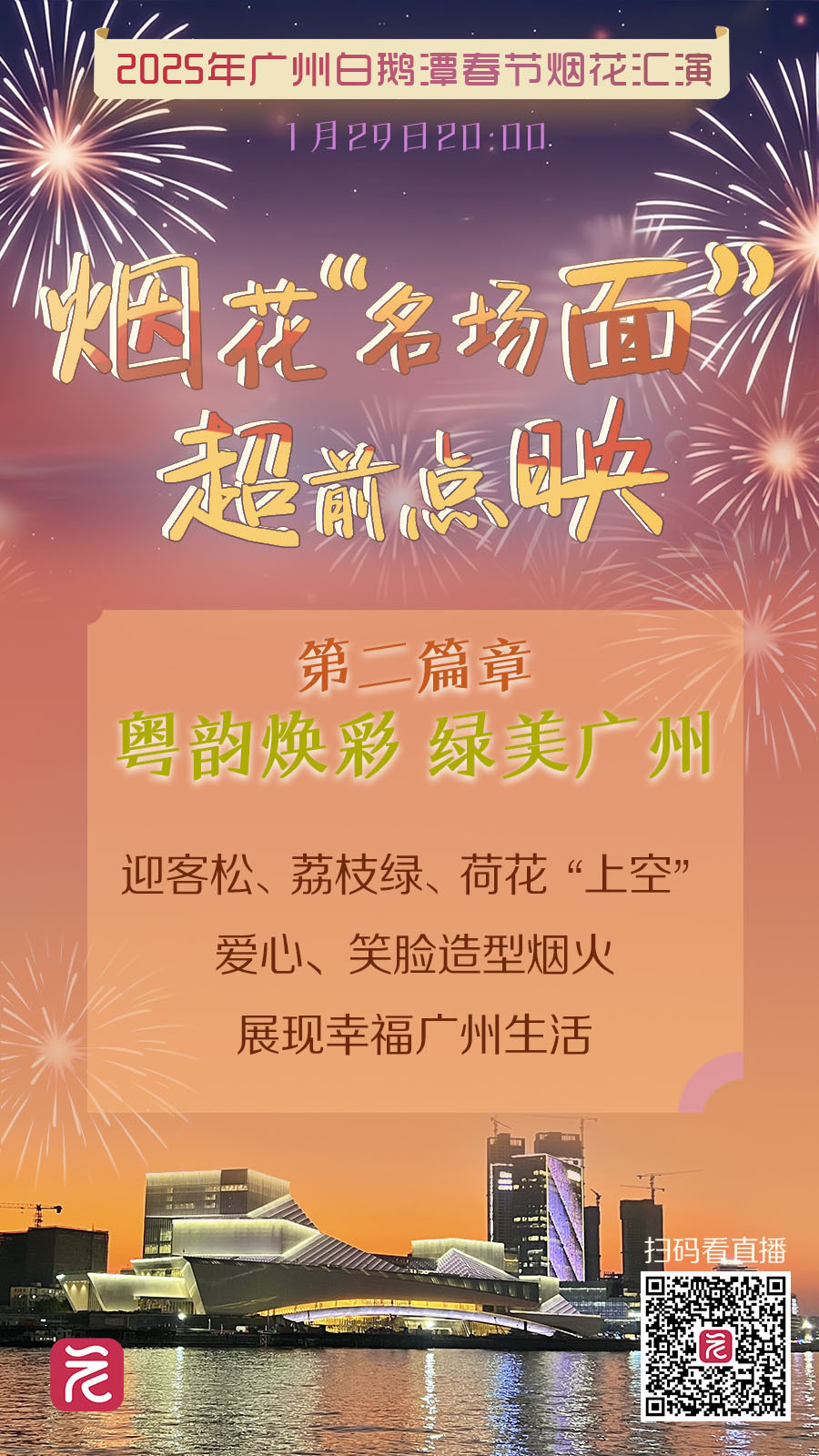 2025年广州春节烟花汇演即将在白鹅潭上举行