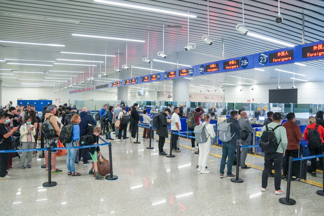 越在这时,越考验中国移民管理警察的执法水平和能力。很快,更多的入境航班抵达了,白云边检站的执勤民警越发忙碌。