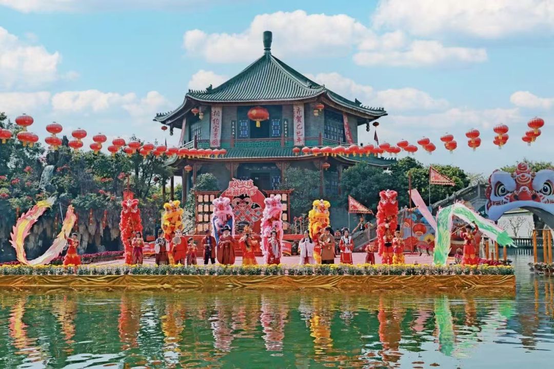 此外,在白云区、番禺区等地主题乐园、户外公园、文创园区也推出系列新春活动丰富游园体验。白云区帽峰山天湖景区推出了创意集市游园、森林音乐会、文创展示等活动,户外的山清水秀和田园风光,吸引了不少运动爱好者前来打卡。番禺区长隆野生动物世界开放全新蛇馆,稀花蛇品种正式公展,灵蛇花车亮相,蛇年新春氛围感满满。长隆欢乐世界以“财神”为核心元素延展,打造椰林大道“财神村”。长隆熊猫酒店在大堂举办新春巡游表演,让外地游客也能感受热闹的广府春节文化。