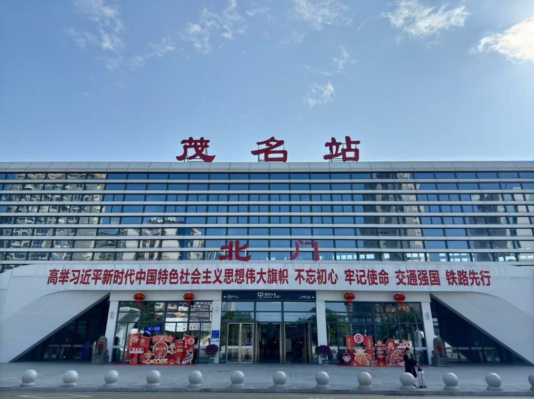 1月28日,2025新年除夕日,高铁茂名站里已是喜气洋洋,人潮涌动。北进站口两旁,石狮子挂上了红绸带,红色指示牌上“温馨春运文明相伴”的系列祝福语,让人心头暖融融的。在这个阖家团圆的时刻,茂名站的全体工作人员依然坚守在自己的岗位上,用责任与担当,护航旅客回家路。