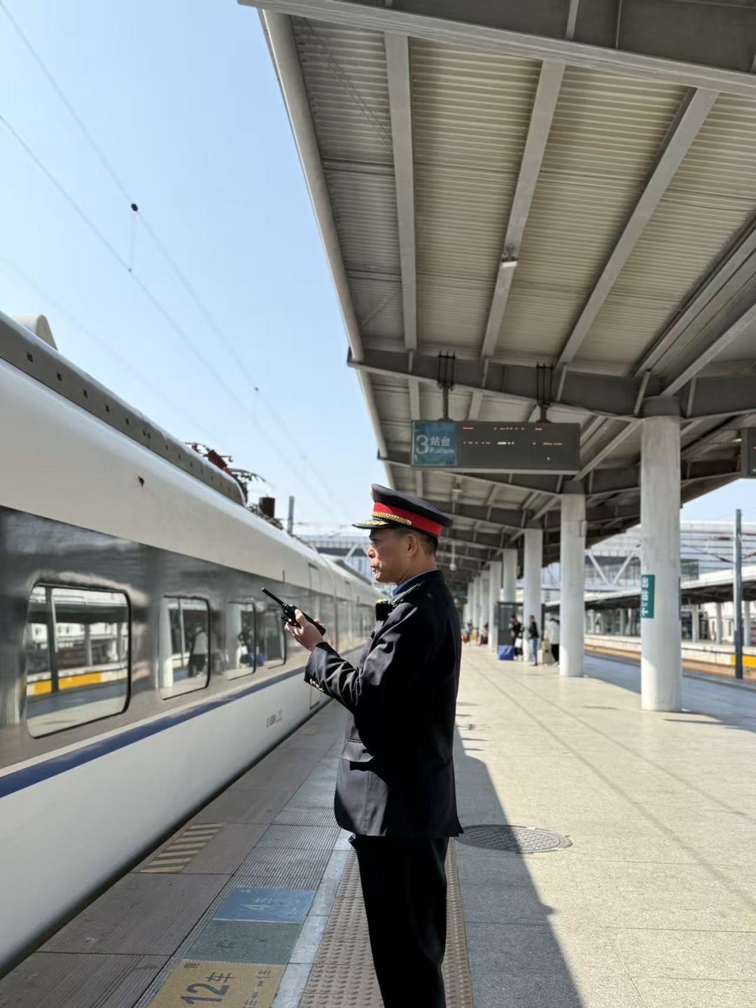人朝涌动,列车正缓缓驶入站台,站台工作人员早已各就各位,有条不紊地引导着归途的旅客。除夕里,茂名站的每一位工作人员都在自己的岗位上默默奉献着,他们放弃了与家人团聚的时光,用自己的辛勤付出,让旅客的回家之路更加顺畅、温馨;他们用实际行动,把温馨融入服务,把满意种在旅客心里,成为今年茂名站春运中最温暖的风景。