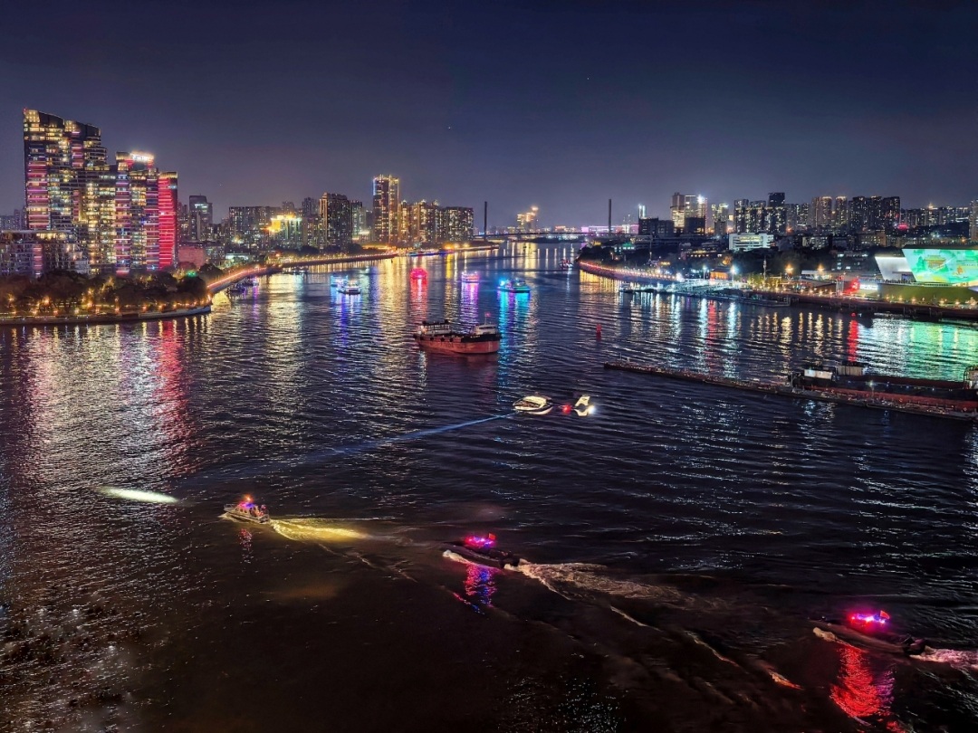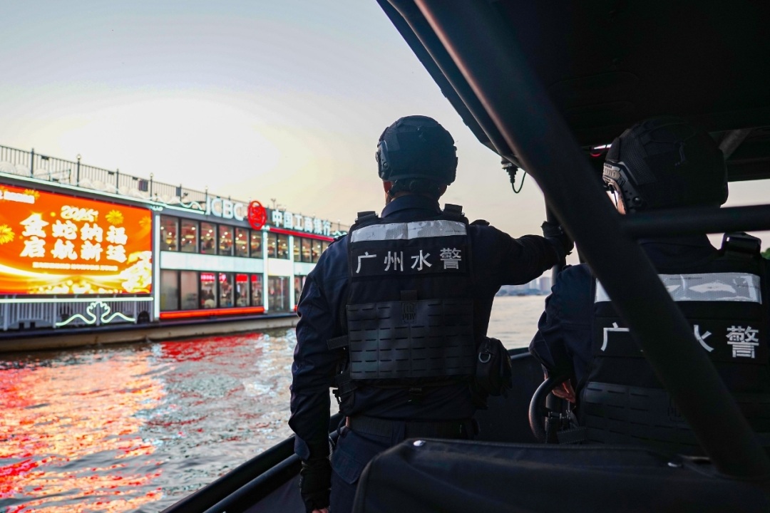 1月29日清晨6时,烟花船开始从旧广船码头移泊,缓缓驶向白鹅潭燃放点。“5公里的距离,我们一路护航,直至上午10时到达目的地。”王上说,24艘船艇、近270名警力在水面做好应急备勤、核心区水域封控警戒、周边水域巡逻防控、珠江游码头和观礼游船安保等任务,确保市民游客在欢乐祥和的氛围中欢庆佳节。