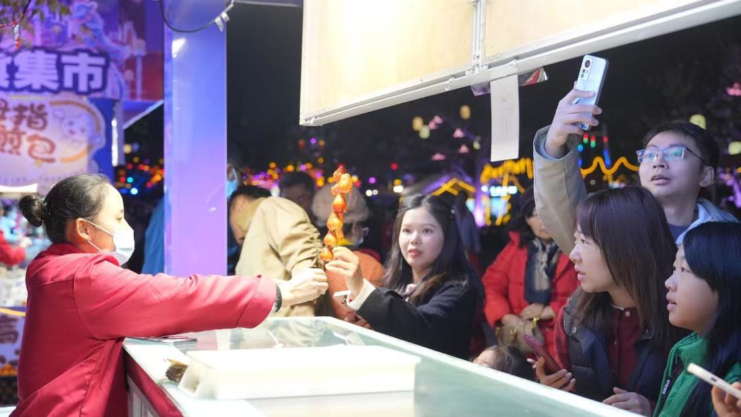 双皮奶、猪扒包、烤羊肉串、灌汤包、疍家糕……灯会汇聚了粤港澳大湾区城市特色美食和南沙本土食品,让广大市民游客尽享舌尖上的“灯会”。集市设置了顺德美食区、丝路集市美食区,美食摊档汇聚了来自湾区各个城市的优质餐饮商家、地道手信、知名小吃等2000多种特色美食。游客张女士表示:“灯会好看好玩还好吃!逛了一路,吃了一路,晚饭在灯会解决了。”