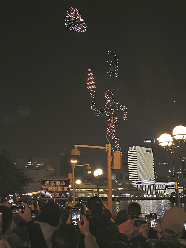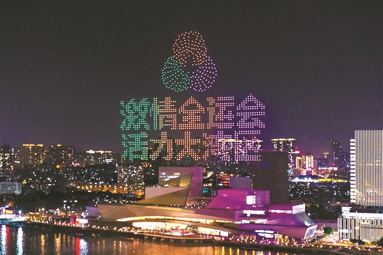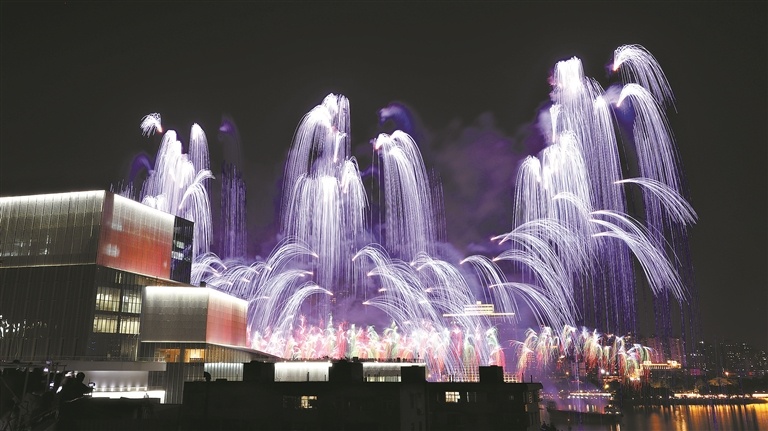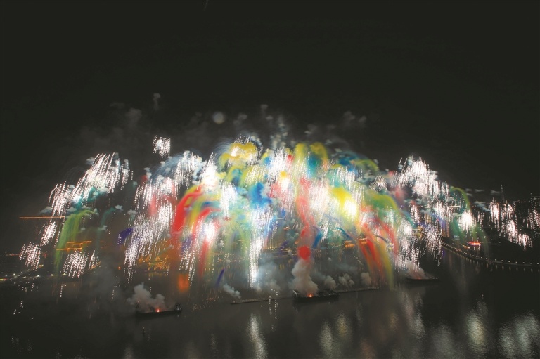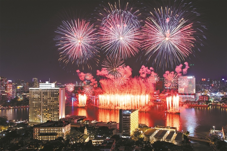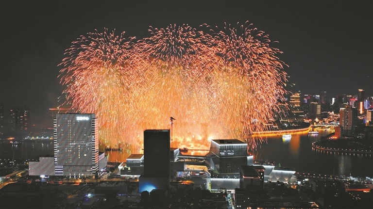 珠水之畔,光影闪烁;花城夜空,烟花璀璨。“活力湾区、好‘运’广州”在绚烂焰火中照亮城市繁华。