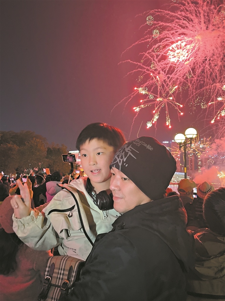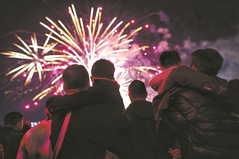 人们将对阖家欢乐、共享年味的美好期待寄托在璀璨烟火中。