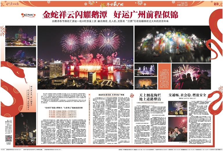 保交通顺畅、保社会面稳定、保燃放安全……广州警方多措并举守护这场春节“烟花之约”。“越是过节,责任越重。我们的初衷就是想让市民游客开开心心赏烟花,安安全全返家。”史彦收道出心声。
