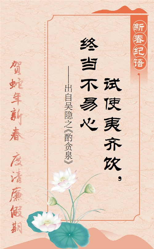 且守清廉而自律,莫见小利失名节。吴隐之作为廉洁修身的典范,值得我们每一位党员干部自觉学习借鉴。我们只有提高道德修养和精神境界,从内心入手来规范自己的一言一行,做到自重、自省、自警、自励,才能自觉抵御各种消极腐败思想的侵蚀。