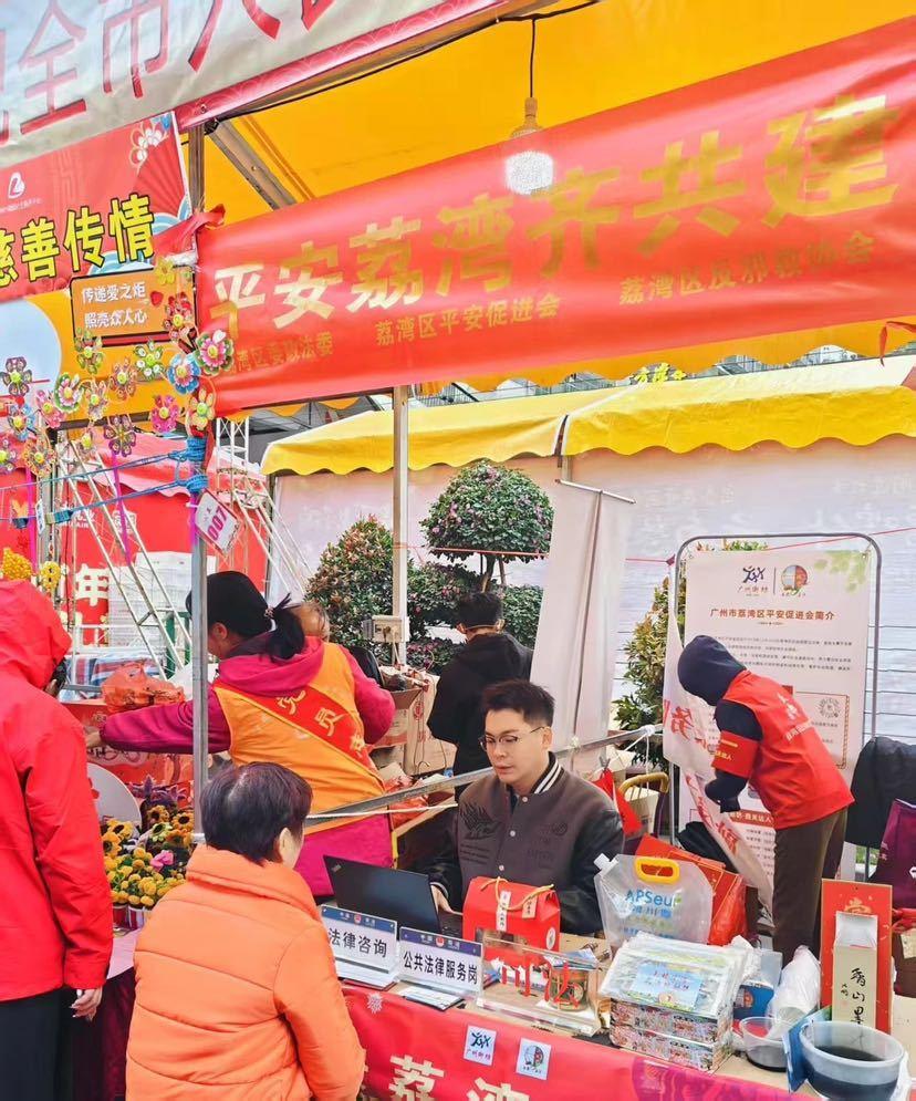 广州过年,花城看花。1月26日—28日,腊月廿七至廿九这三天,荔湾迎春花市热闹非凡,在熙熙攘攘的赏花、买花人潮中,一场令人瞩目的平安建设宣传活动也在此期间如火如荼地展开。