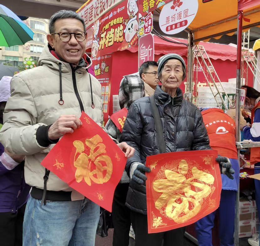 另一边,荔湾区总工会的书法挥毫活动散发着独特魅力。书法家们笔走龙蛇,墨香在空气中弥漫开来,一幅幅饱含祝福与文化韵味的书法作品跃然纸上。“平安广州”“和谐家园”等字样苍劲有力,既展现了传统书法艺术的博大精深,又巧妙地将平安建设主题融入其中。市民们纷纷驻足欣赏,有的还现场求字,希望将这份带着墨香的平安祝福带回家。这些书法作品挂于花市显眼处,为热闹的市井氛围增添了一抹高雅的文化底色,使平安理念与传统文化深度交融。