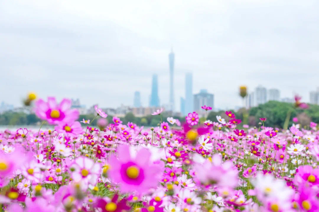 海珠湿地公园:超过3万平方米花海宛如油画春天