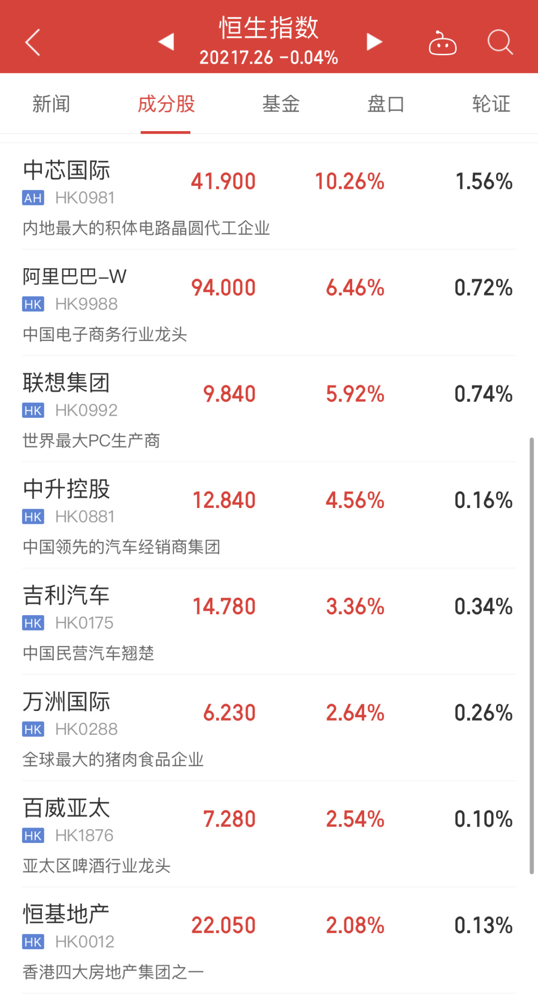 个股方面,AI概念股走强,阿里巴巴涨超6%,中芯国际涨超10%,金山云大涨超31%创历史新高。加密货币大跌拖累相关板块走低,雄岸科技、欧科云链跌超9%,新火科技控股跌近4%。