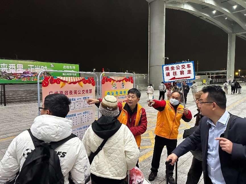 据介绍,20余名志愿者穿梭于站台与车厢,搬行李、指路线、扶老幼。此外,依托实时客流监控系统,广州巴士集团动态调整发车频次,确保夜班线路与高铁末班无缝衔接,真正做到“车等人,不等车”。