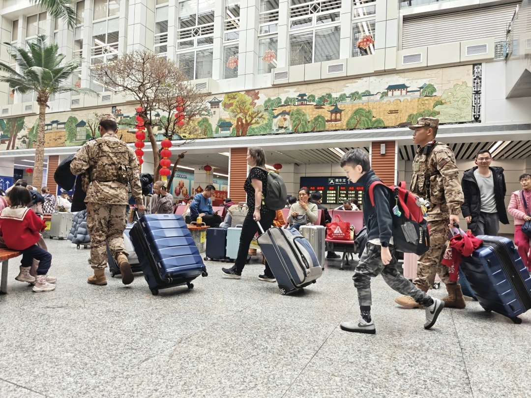 随着春节假期接近尾声,春运返程高峰如期而至。近日,广州各大交通枢纽人头攒动。在这忙碌的春运返程大潮中,除了有带着家人的牵挂和新年的祝福匆匆踏上返程旅途的旅客,还有一群默默坚守岗位的武警战士。他们用自己的忠诚和担当,为旅客们的平安返程保驾护航。