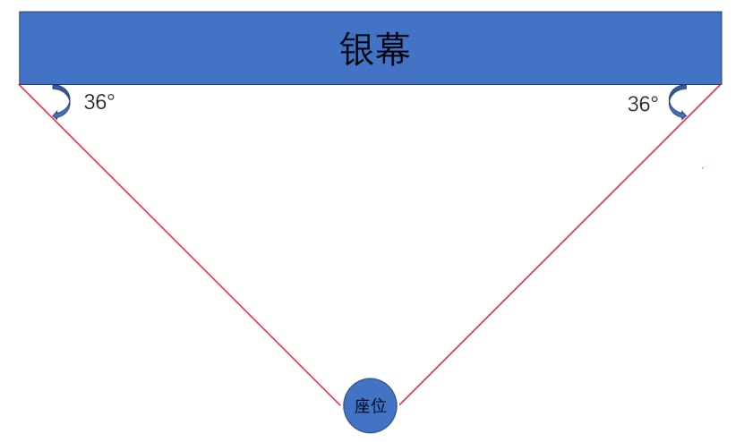 对于2D电影来说,首先画面需要尽量占满观众的视野,观众与屏幕两侧的视线夹角至少要≥36°,示意图如下: