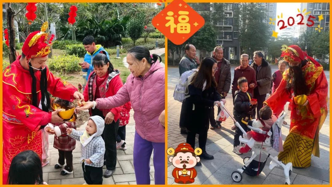 “财神到,财神到,好走快两步。”春节期间,南沙土地开发中心组织相关安置区物业管理服务单位,在横沥镇安置区二期,横沥镇灵山安置区,黄阁镇安置区三期、四期等安置区举办“财神送福”系列活动。活动中,“财神”身披红色官服,手持金色元宝,在小区巡游,沿路将“恭喜发财”的祝福与象征着财富的“红包”“金币”送到住户手上,街坊邻居纷纷上前主动合影,沾沾财气。