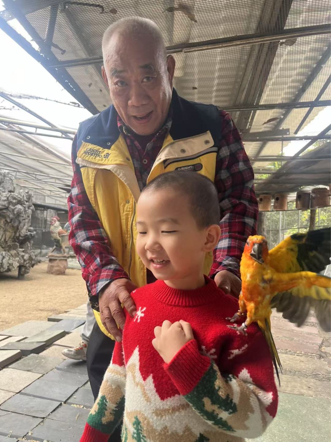 市民春节期间鹦鹉园内与鹦鹉近距离接触