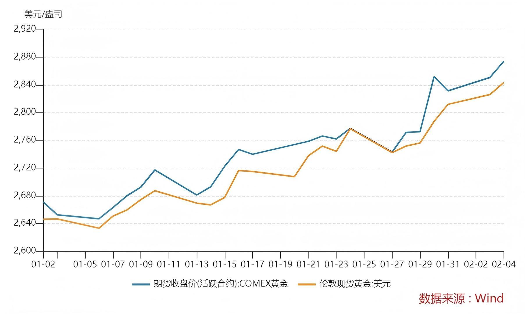 自2025年1月1日以来,国际金价实现连续五周上涨,现货黄金、COMEX黄金价格涨幅均超8%,每盎司涨超210美元。