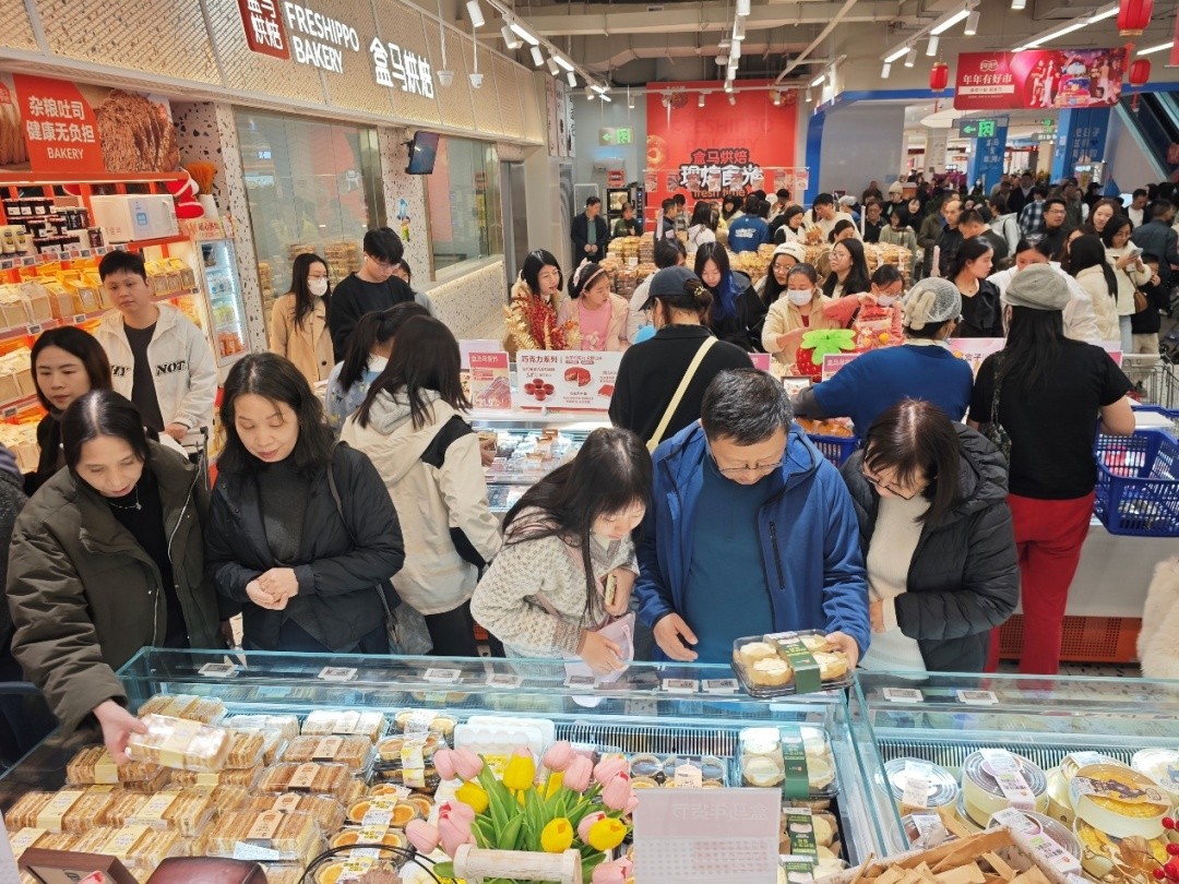 据悉,在今年过年期间,盒马成为城区必逛必买的“顶流”打卡点。其中,盒马去年年底新进驻的多个大湾区潜力型城市——东莞、珠海、中山等多地盒马门店因为人气火爆不得不进行现场限流。