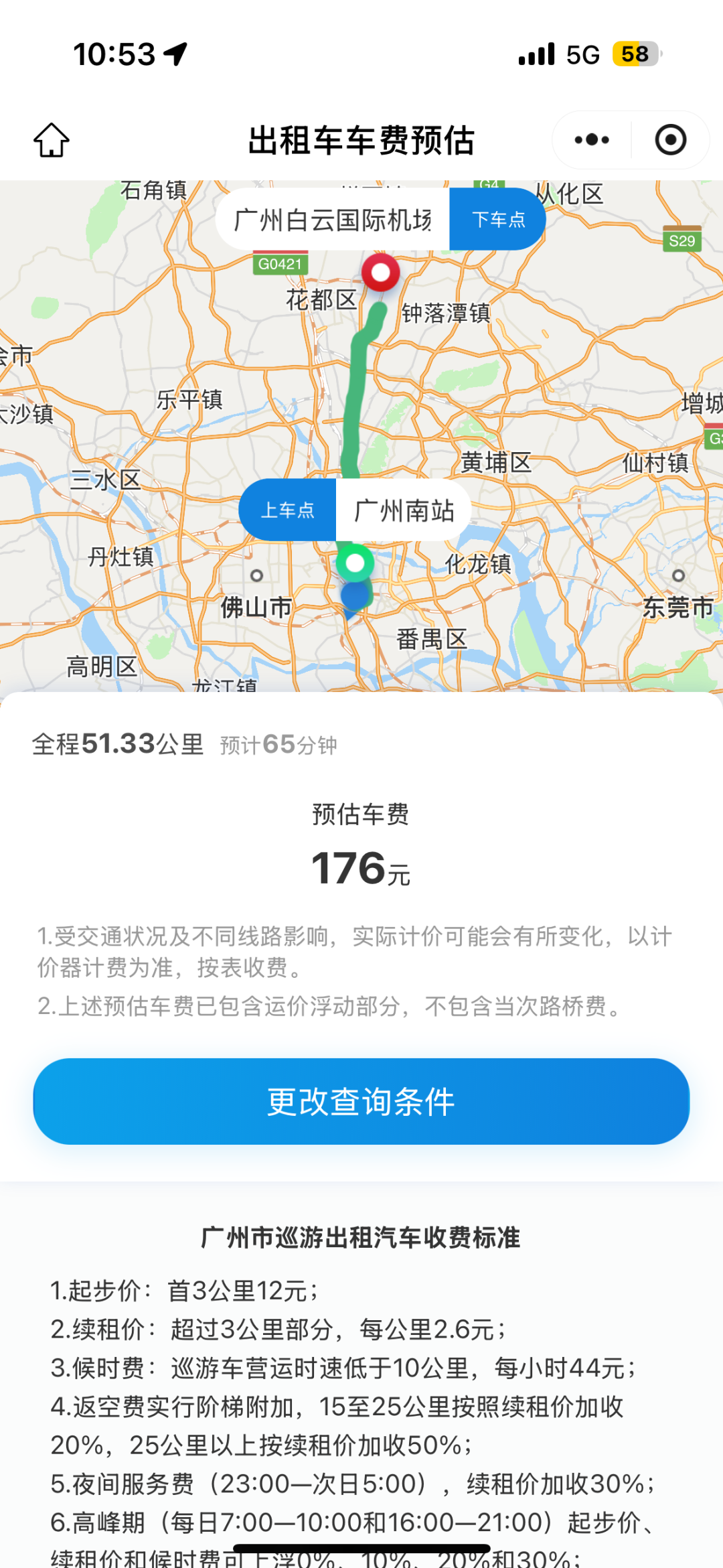 据悉,在“车费预估”小程序中选择出发地和目的地后预估价格,便可以看到推荐行驶路线和预估车费。据如约出行集团春运保障调度负责人林友福介绍,目前市民仅可通过扫描二维码登录小程序,预估车费为实时预估,包括了高峰期或平峰期上下浮动的价格,并受交通状况影响会有波动。“‘车费预估’小程序算出的价格是一个供大家参考的价位。”林友福说,需要注意的是,预估价格不包括高速过路费。