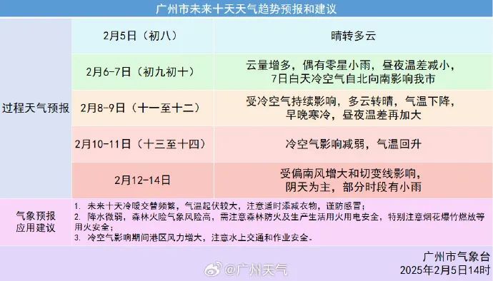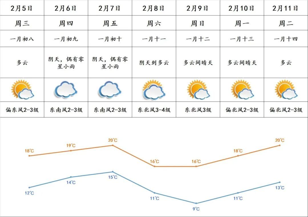 至于南沙方面,预计6—7日云量增多,并伴有零星小雨;7日傍晚—9日和13—14日受冷空气影响,气温下降,北风加大,过程最低气温9℃左右。