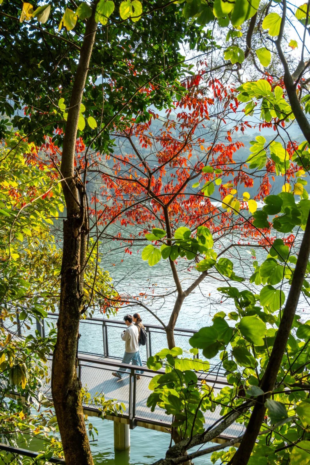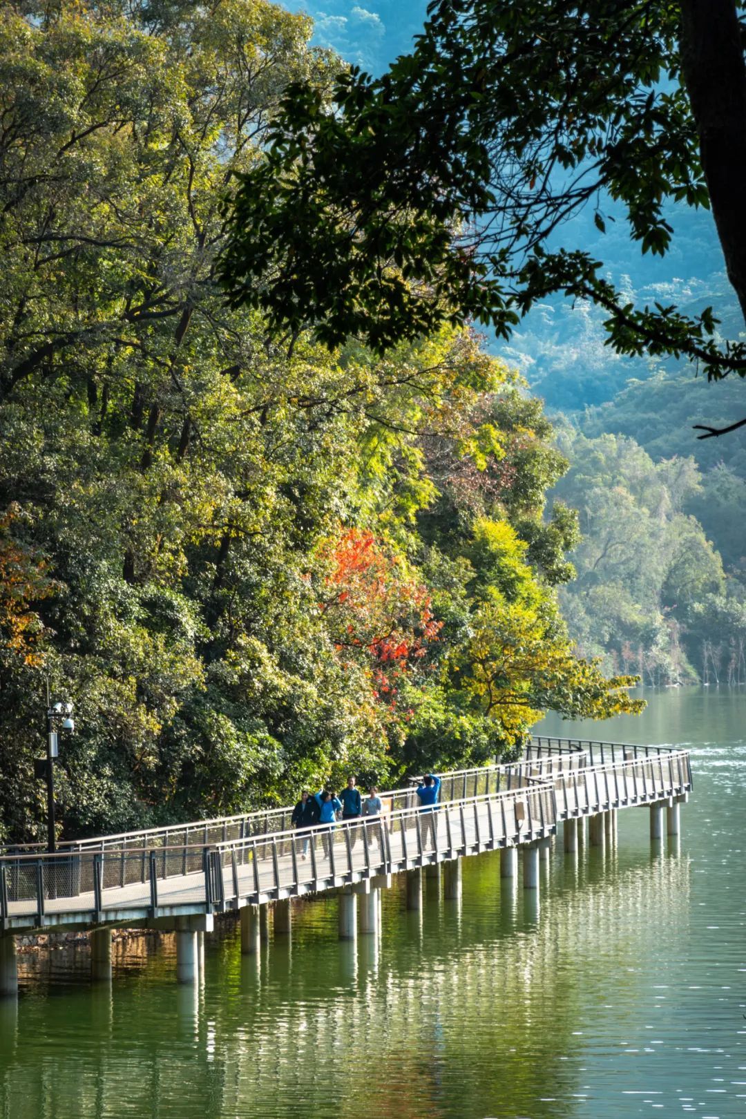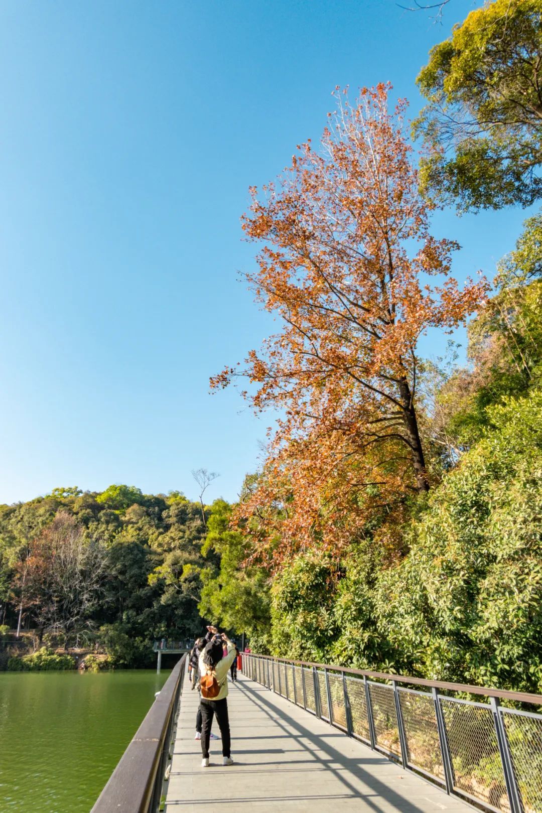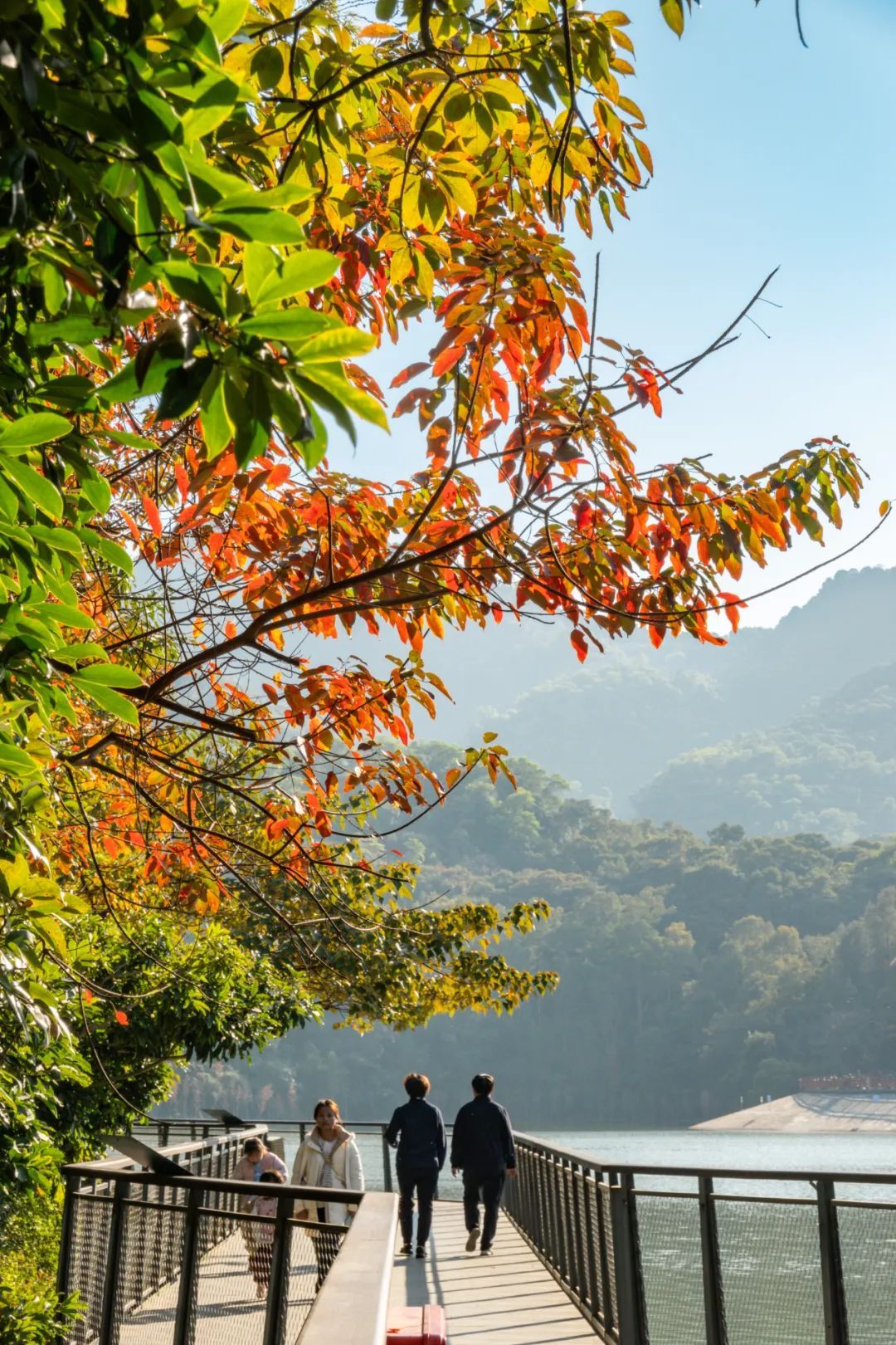 黄婆洞水库观赏红叶的特色在于这里的栈道,水库栈道是白云山的一处“网红”景点。