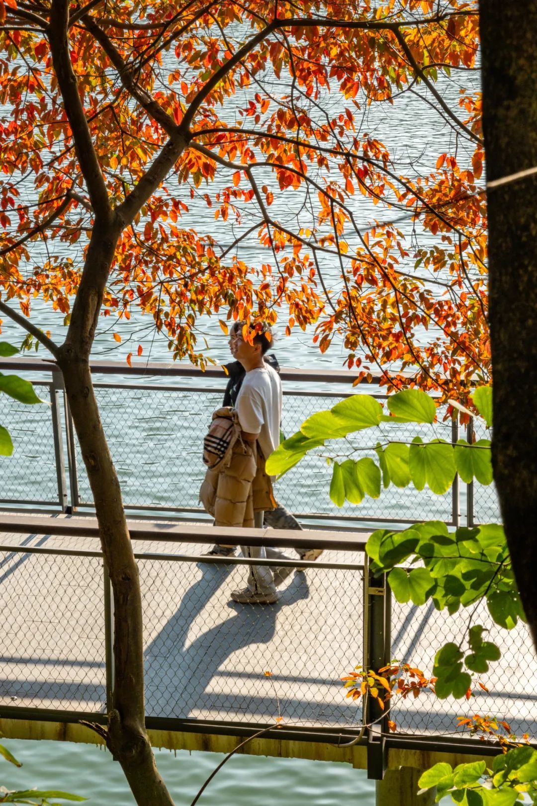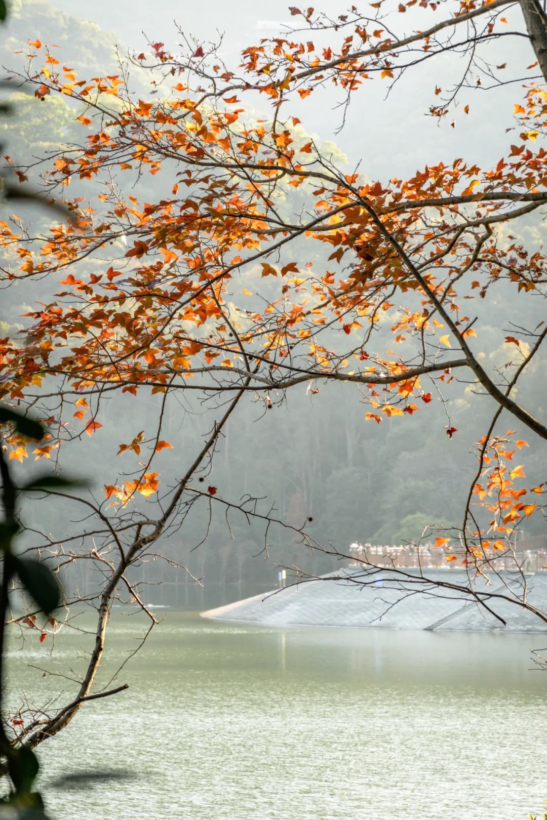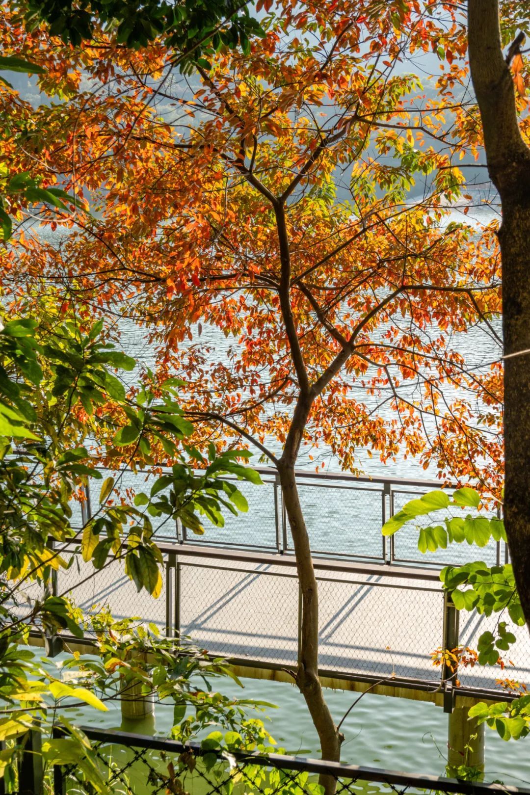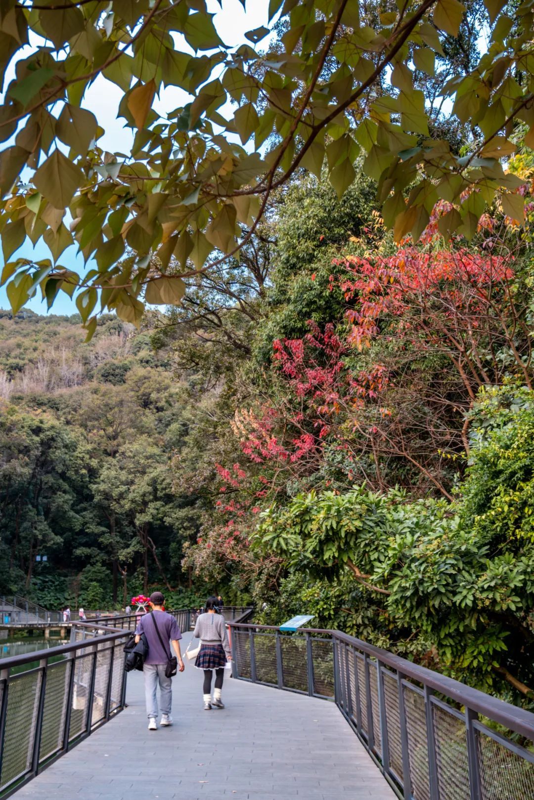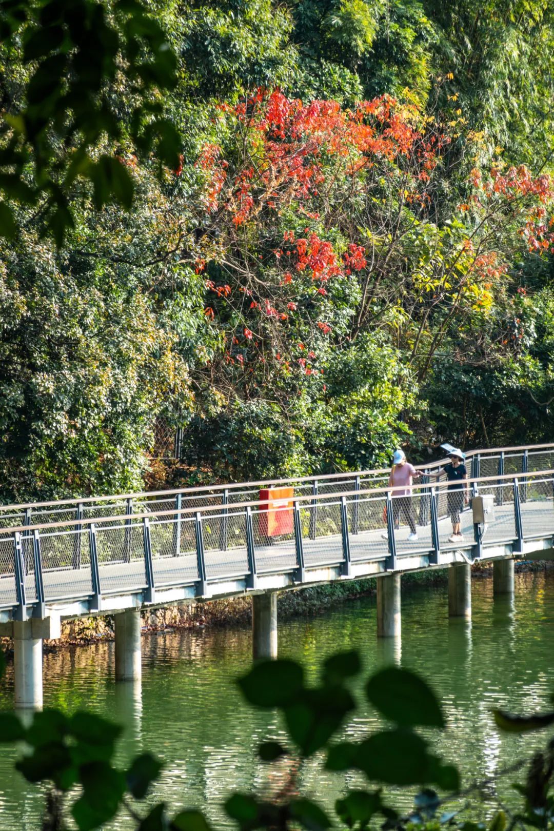 黄婆洞水库观赏红叶的特色在于这里的栈道,水库栈道是白云山的一处“网红”景点。