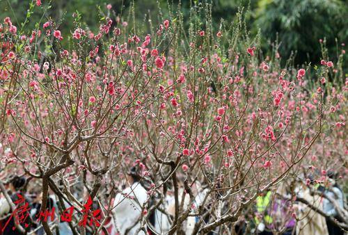 广州白云山桃花涧的桃花迎来盛花期,为市民游客带来关不住的“满园春色”。 园内桃树主要有绯桃、白碧桃、蟠桃以及寿带桃等多个品种近2000株。
