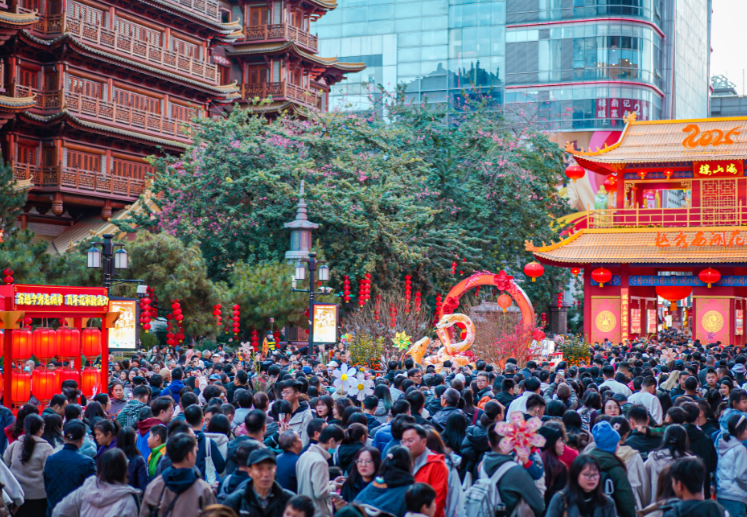 新年伊始,行花街人头攒动,百尺竿头更进一步。