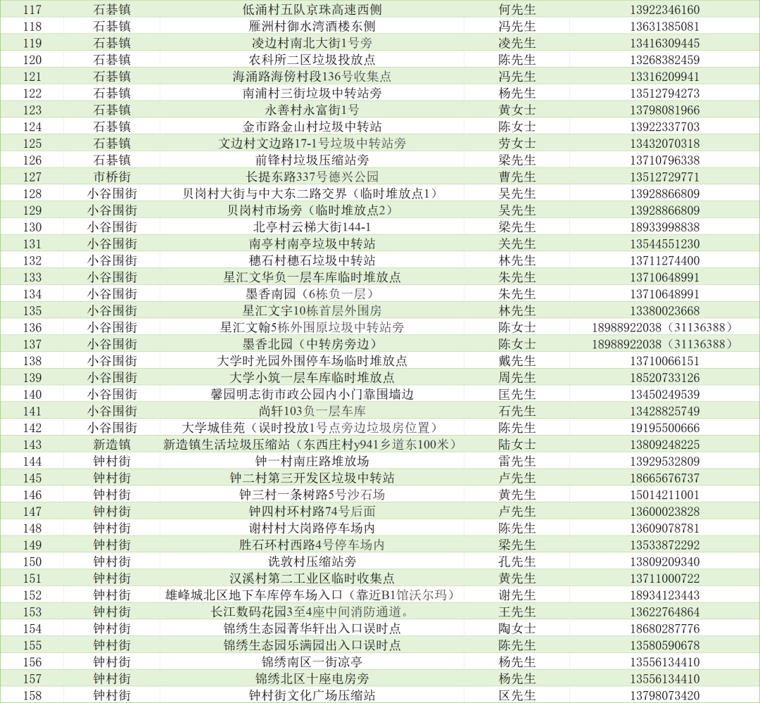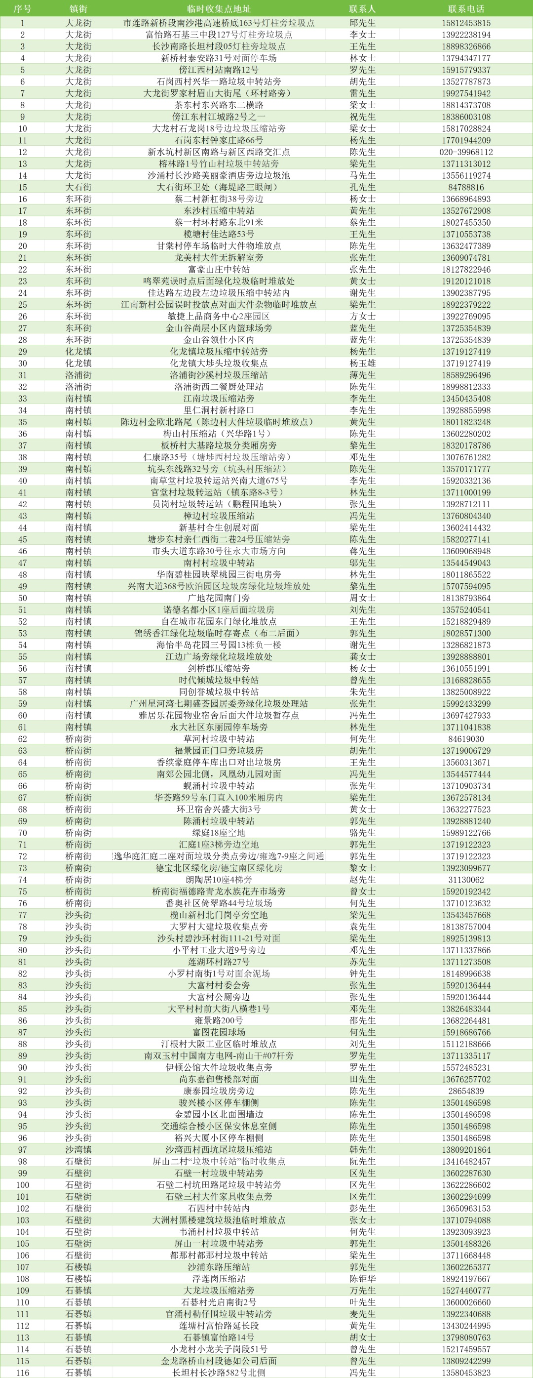 临时收集点最全名单