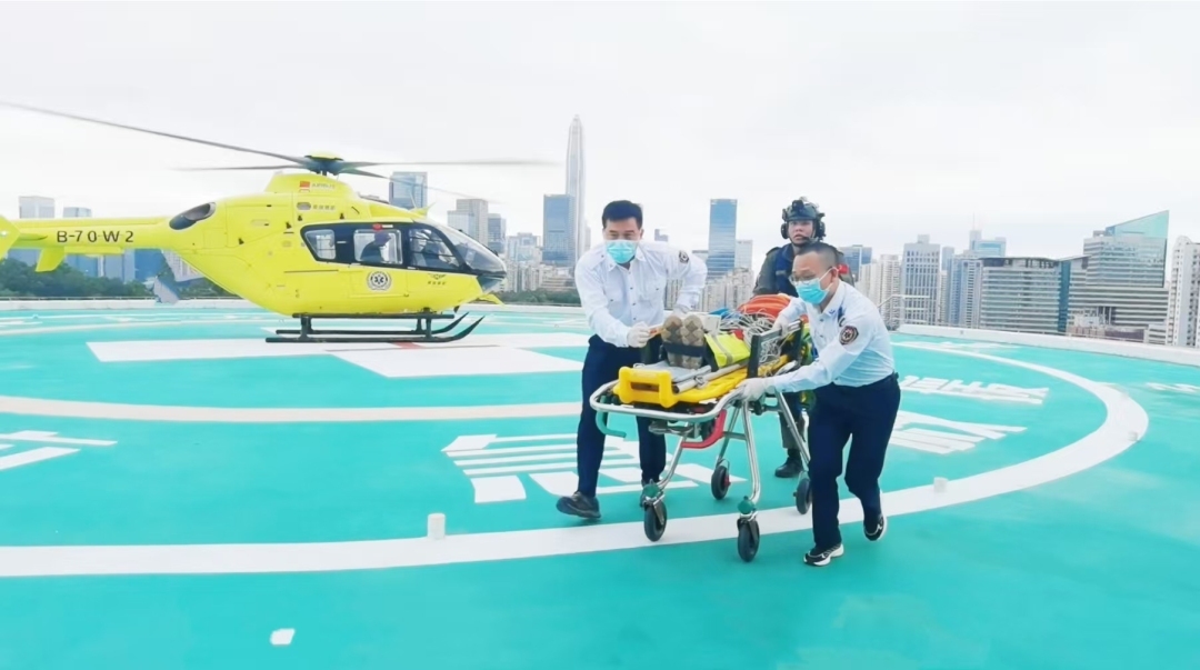 时间就是生命!为确保小乐能得到及时救治,深圳120启动了空中救援机制,联系东部通航派出直升机,通知北大深圳医院开启应急救援绿色通道、做好救治准备。