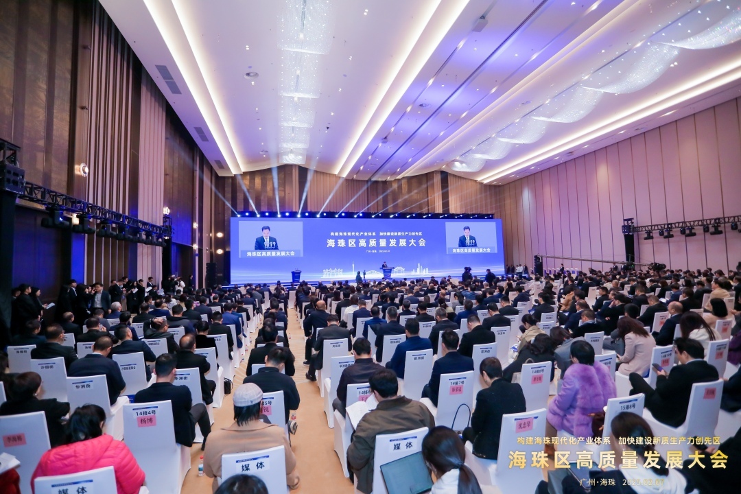 2月7日上午,广州市海珠区在“中国第一展”广交会堂召开“开春第一会”——全区高质量发展大会,围绕“构建现代化产业体系,加快建设新质生产力创先区”,对全区上下推动高质量发展进行再动员、再鼓劲,增强企业扎根海珠区发展的信心和决心,凝心聚力实现海珠发展新跨越,打造推进中国式现代化广州实践的新引擎、广州高质量发展的新高地、老城市焕发新活力的新示范。
