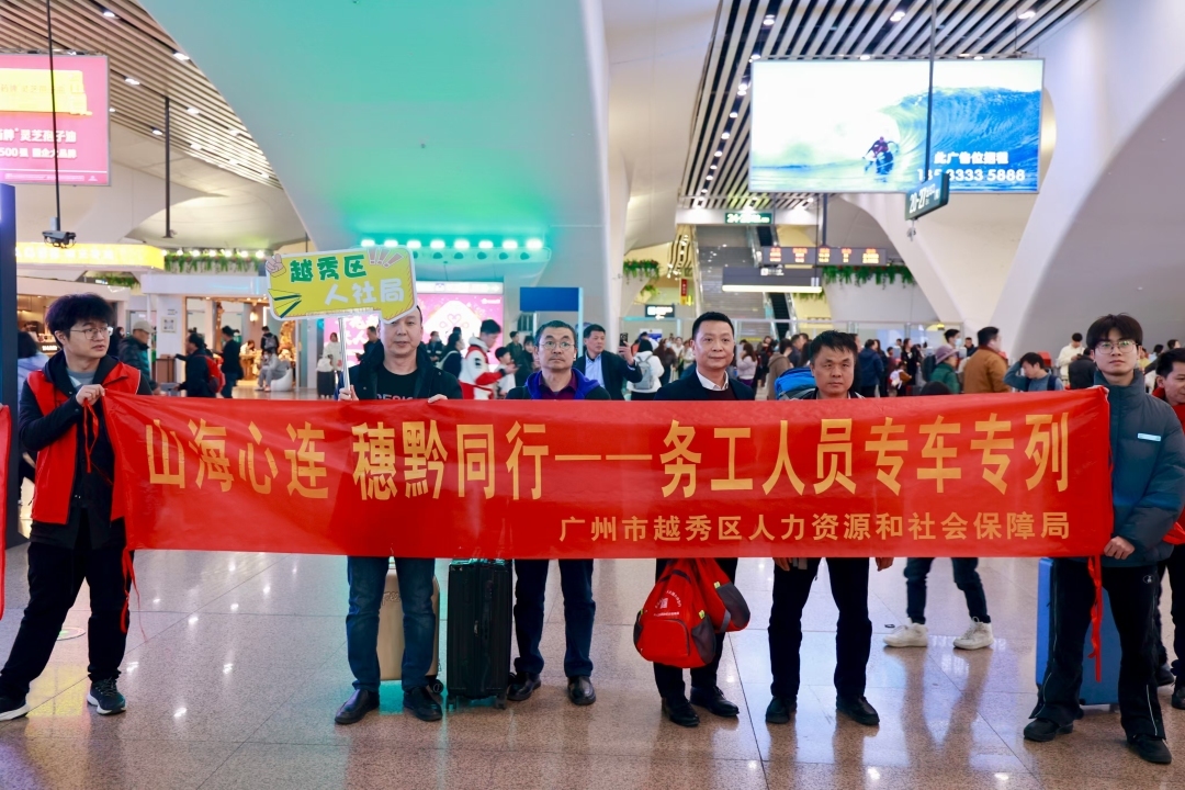 2月7日,广州市越秀区“山海心连之家”再次发力,成功助力贵州籍务工人员搭乘专车专列顺利返岗,为新一年的就业与生活按下“快进键”。当天16时19分,随着D1857次列车缓缓驶入广州南站,来自贵州省黔南州独山县的脱贫人口姚先生顺利抵达广州。这是姚先生第5次通过越秀区“山海心连之家”平台乘坐返岗专列,也是越秀区人力资源和社会保障局为贵州籍务工人员开展“点对点”专车专列一站式接送返岗服务的生动实践。当晚11时03分,又一趟D1848次列车将满载着613名贵州籍返穗务工人员抵达广州南站,他们将带着对新一年的期待和憧憬,开启新的奋斗征程。