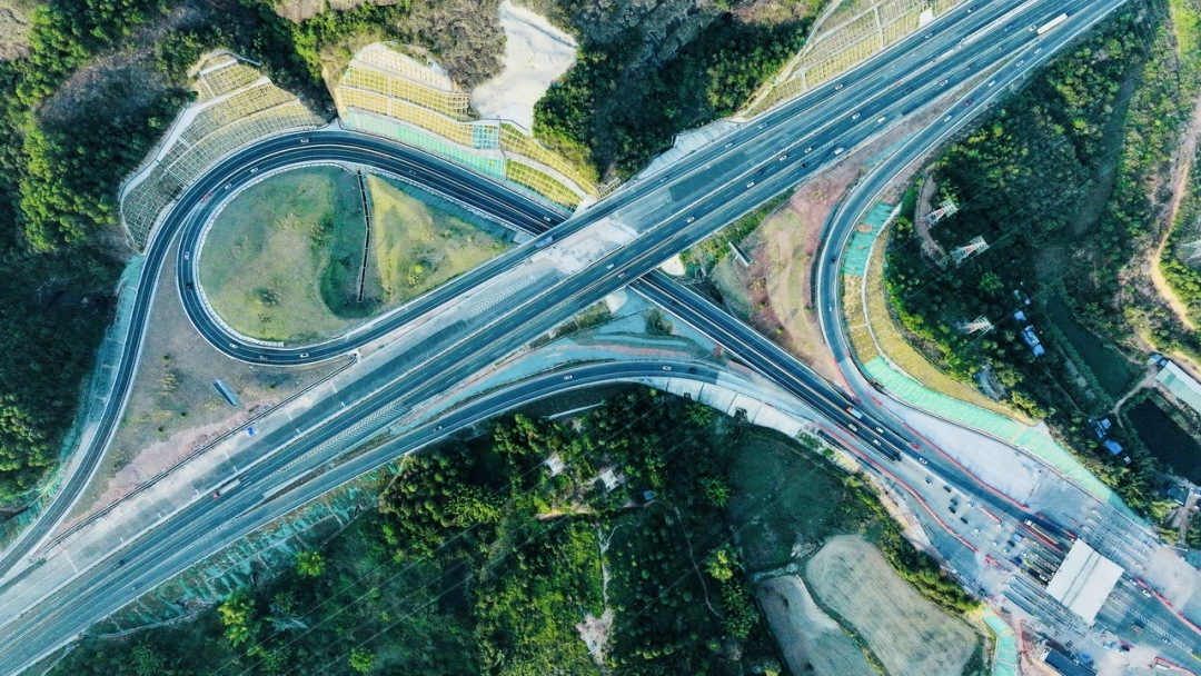 航拍长深高速河惠段改扩建项目收费站出口一角