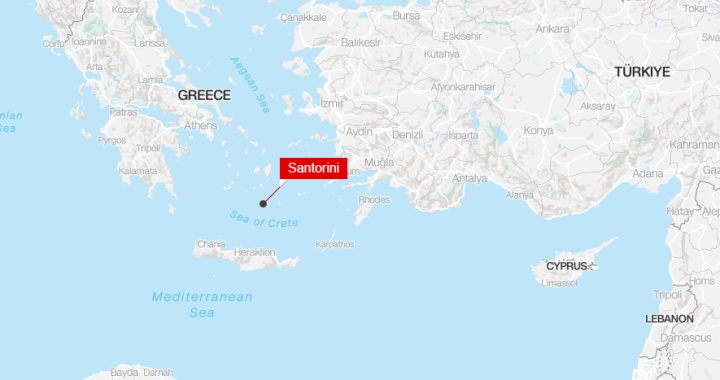 圣托里尼岛最近一次7.5级大地震发生在1956年,造成至少53人死亡,100多人受伤。
