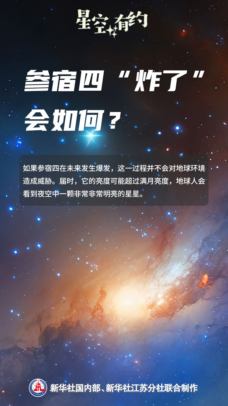 即便参宿四在未来真炸了,公众也不必担心。王科超表示,因为参宿四距离地球约600光年,并不会对地球环境造成威胁。届时,它的亮度可能超过满月亮度,地球人会看到夜空中一颗非常非常明亮的星星。