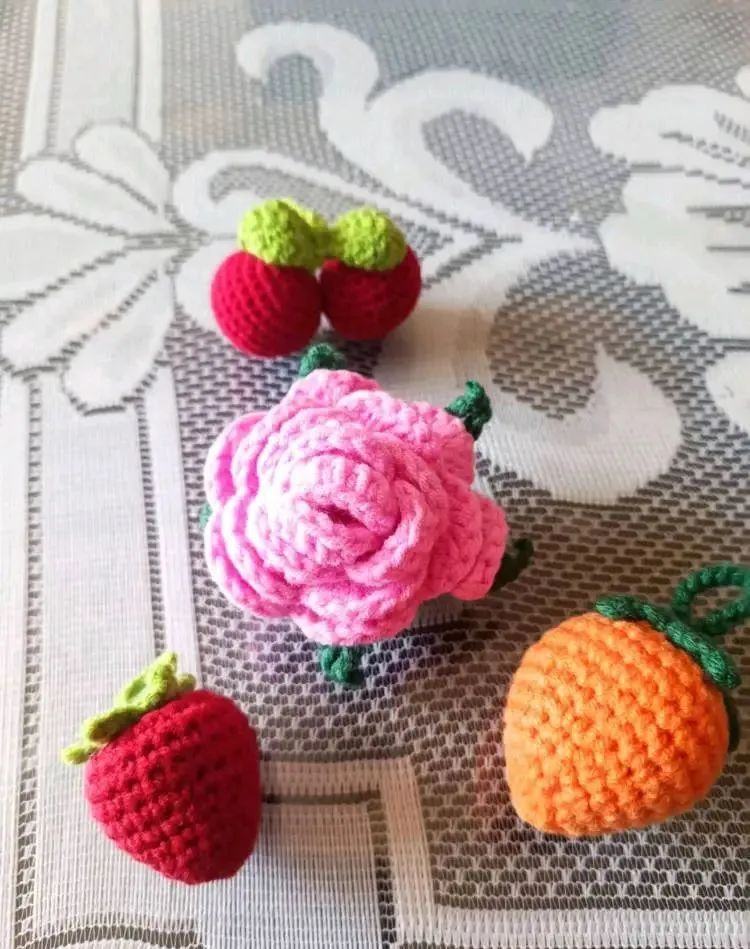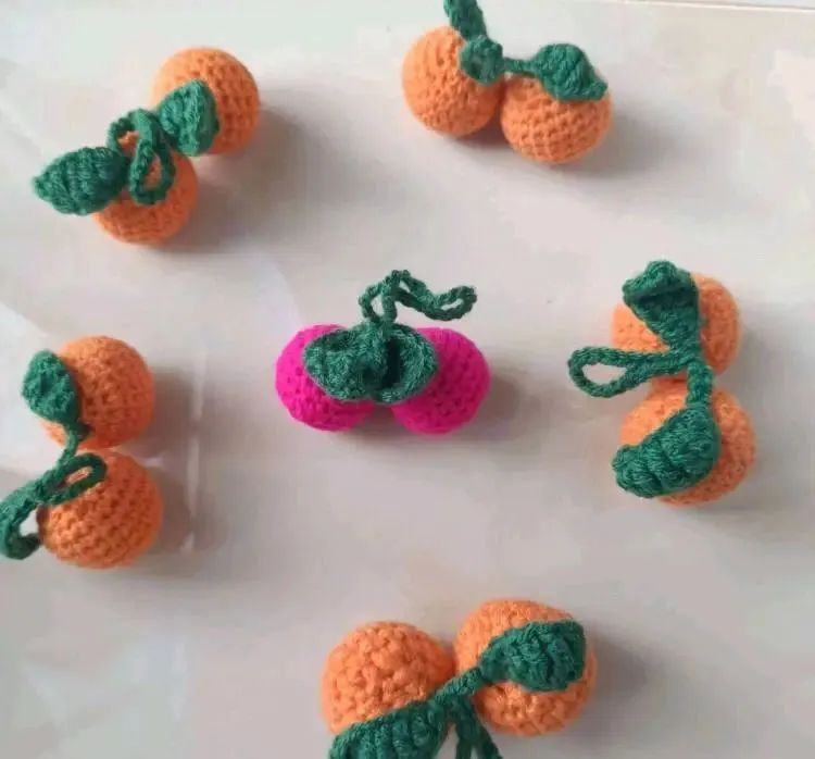 除了理发之外,日常生活中,陈燕仪还有一个爱好——钩织。退休后的她,有更多的时间投入到这个爱好中。她先是跟着社区里的老师学习钩织技巧,然后又通过观看视频,以及与同好交流,来不断提高自己的水平。通过不断精进,她对各种针法的操作逐渐上手,很快就能够熟练地钩织出各种精美的手工艺品了。采访过程中,陈燕仪向小e展示了不少她的手工作品,有“草莓”“花卉”“车厘子”“柑橘”等等,每一款作品都栩栩如生,很是可爱。