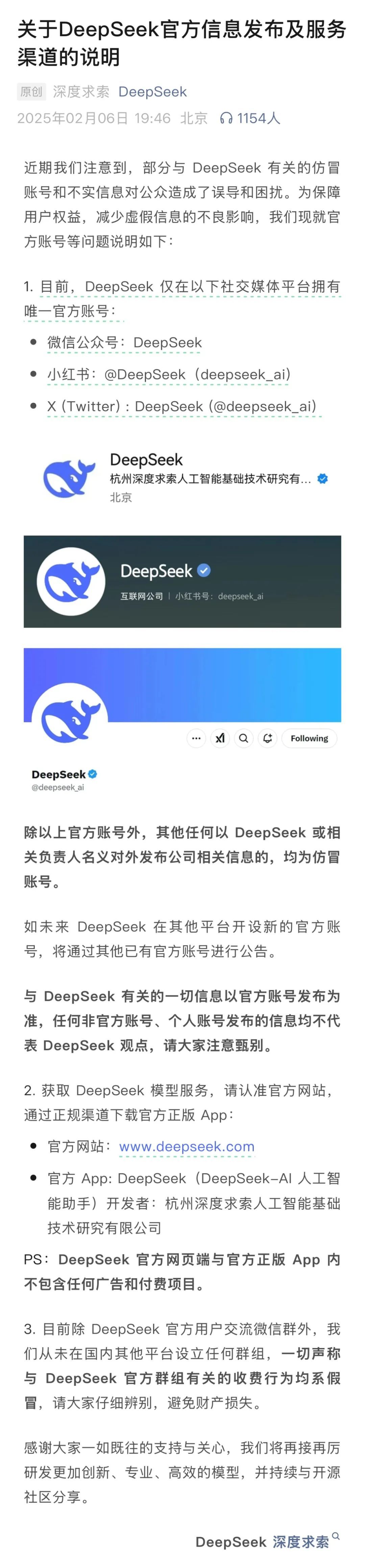 近段时间,国产AI公司DeepSeek深度求索无疑是市场上最火的话题之一。随着DeepSeek现象级爆火,网上涌现出与之相关的操作培训课程,有人卖课短短几天收入数万元。不仅如此,甚至还出现了名字相同、账号相似的网络平台,对公众造成误导和困扰。对此,DeepSeek首次进行公开辟谣。