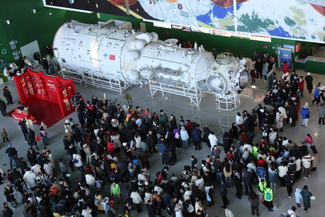 Visitors tour the Tianhe core module structure model at the China Science and Technology Museum in Beijing. During the Spring Festival holiday, the museum received an average of over 30,000 visitors per day. [Photo provided to chinadaily.com.cn]