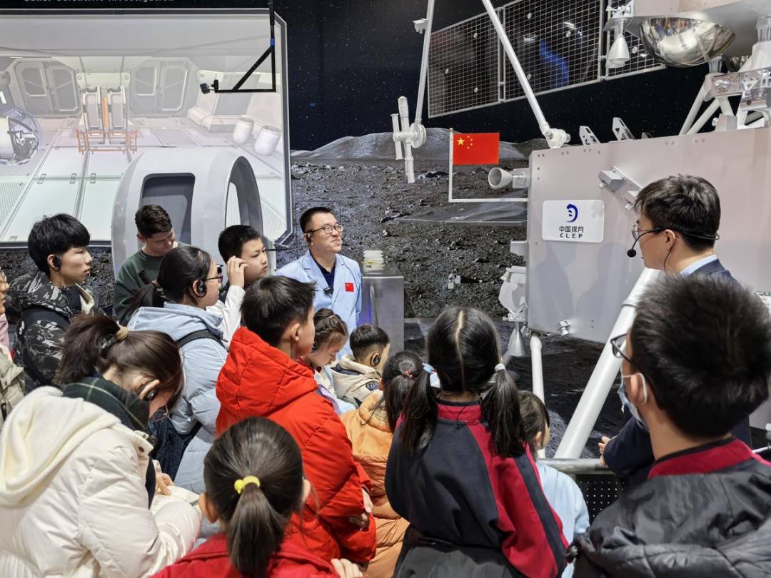 Expert volunteers at the China Science and Technology Museum explain the Chang'e 5 lunar probe to visitors. [Photo provided to chinadaily.com.cn]
