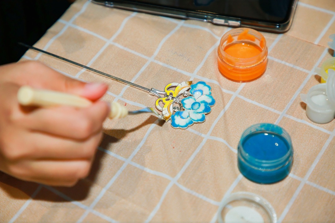 景泰蓝掐丝珐琅以其繁复而有序的制作过程、璀璨夺目的色彩搭配以及大吴泥塑那生动逼真的雕塑形态,共同为参与者打开了一扇通往艺术殿堂的大门,大家在动手绘制与塑造中真切触摸到艺术之美,体会传统文化的深厚底蕴。