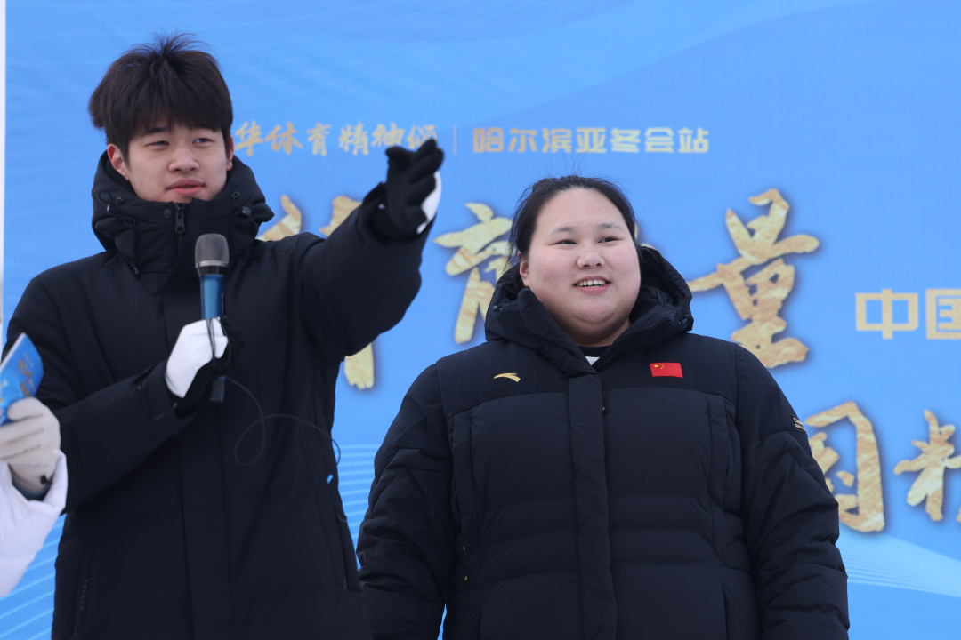 2月11日,哈尔滨亚冬会期间,“中华体育精神颂·哈尔滨亚冬会站”活动在哈尔滨冰雪大世界园区成功举办。举重奥运冠军李雯雯和游泳奥运冠军潘展乐来到现场,与市民和游客互动,分享体育故事,传递中华体育精神。